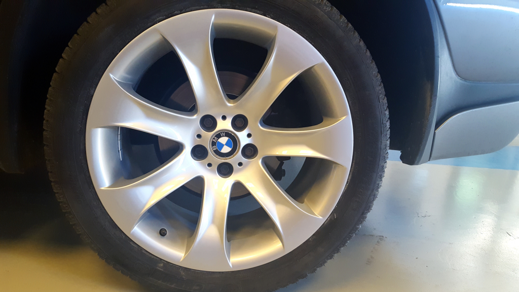 Bueno, centrémonos… el dueño del vehículo se acercó a restaurar las llantas de su BMW X5 4.8 Gasolina, en el acabado original, para mantener el estado de fábrica del coche. Las tenía con varios golpes y marcas típicas de los bordillos, donde había saltado el aluminio y la pintura, poniéndoselo más fácil a la corrosión.