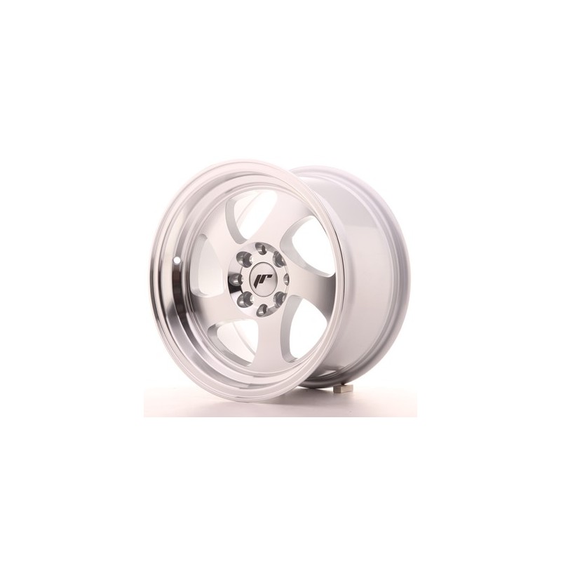 La llanta JR15 de la marca JAPAN RACING tiene un diseño con garganta con 5 palos simples como radios principales y en acabado chrome, machined face, silver y white. Este modelo en concreto, está disponible en las siguientes medidas: 15", 16", 17", 18" y 19".